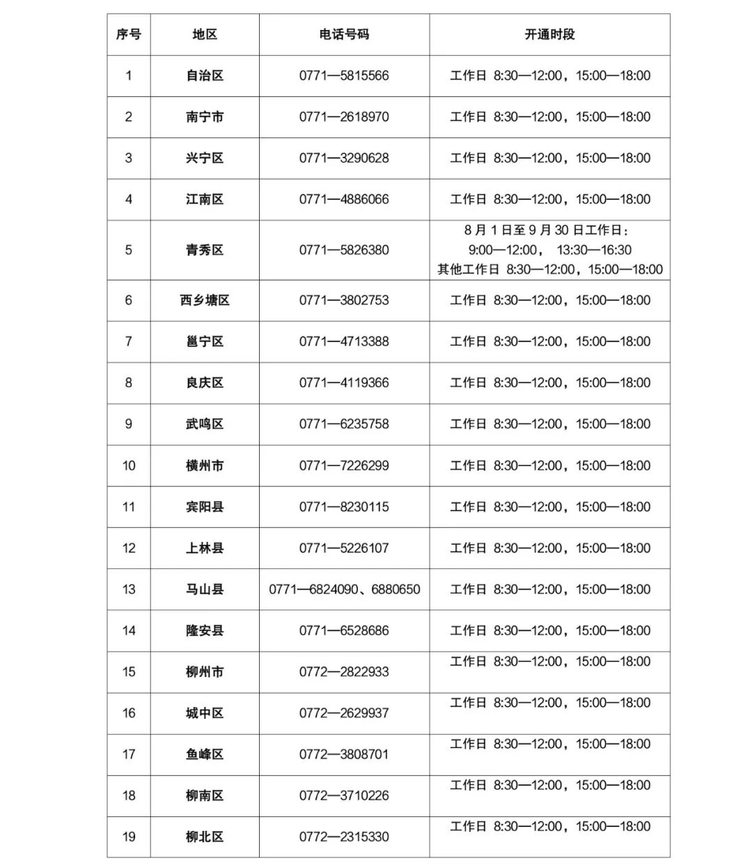 广西各级学生资助管理部门学生资助热线电话